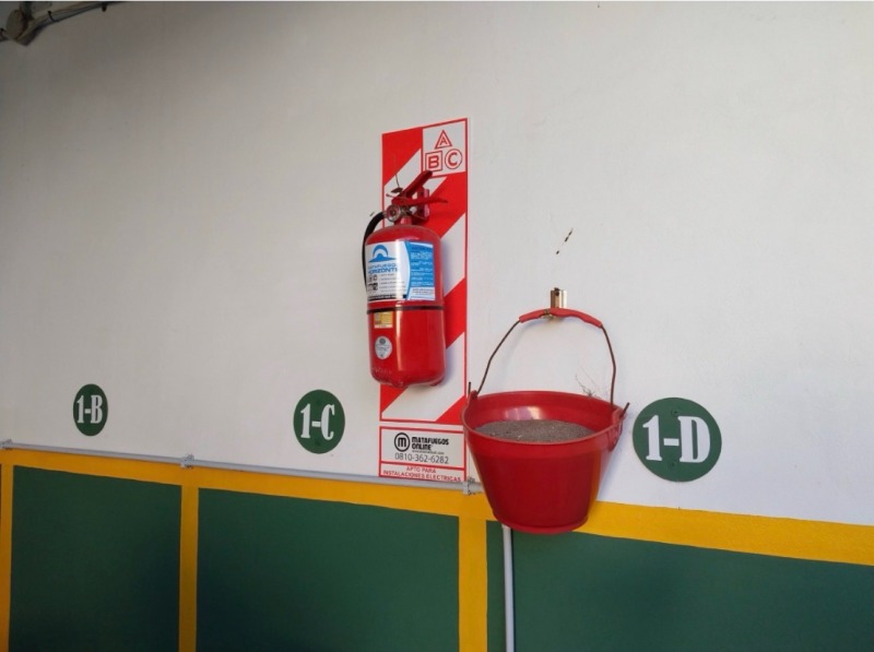 Baldes de arena y matafuegos